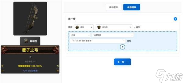 第一步:锁168以上物理百分比81以上物等(能出t1元素点伤)的双子之弓,剥离石剥离到只剩一条,然后c出t1暴击率(这一步成本无上限),目前前缀168物理百分比,后缀t1暴击率