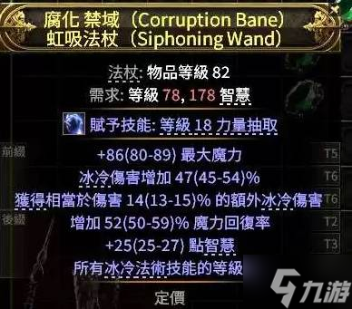 第二步:左旋崇高预兆+大幅提升之兆+高阶崇高石点出两条前缀,如果出好词缀了(t2以上冰电点伤)也依然是一样的做法,只是可以赌运气赌不吃掉那条高t的