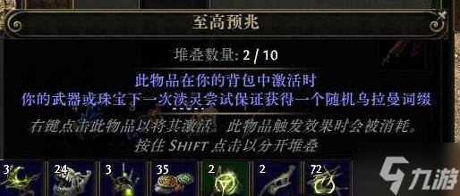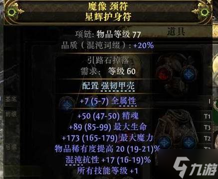 购买50精魂+一条好词缀(例如稀有度,高抗性,投射物技能等级,下面的流程将以稀有度为例子)的好项链(基底能吃到的,比如稀有度底材,全属性底材)