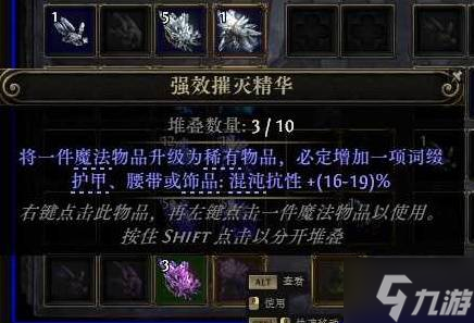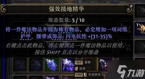 2.锁到后缀稀有度:右旋结晶之兆+完美强化精华吃掉深渊词缀,前缀全局防御,生命,精魂,后缀稀有度,打满想要的抗性的催化剂,催化崇高预兆+高阶崇高石(可以上完美),赌出对应抗性(不是必成)