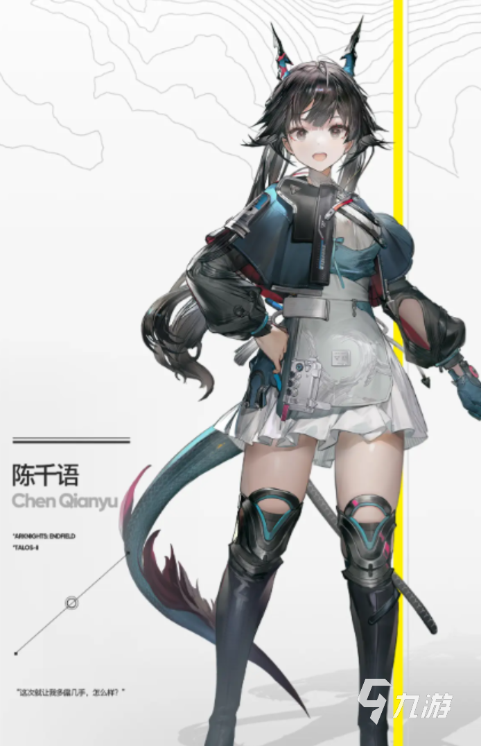 陈千语是一名特勤干员,自幼习武,具备出色的近战能力。她性格积极坚韧,在高压环境下仍能保持冷静,战斗风格干脆果断,高爆发输出和稳定的心理素质使她在前线表现尤为突出。