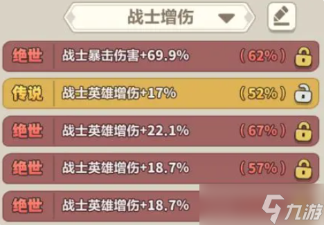 当装备的英雄暴击率图腾数量在0-2个时,推荐洗炼【战士英雄增伤】,优点是输出提升稳定。