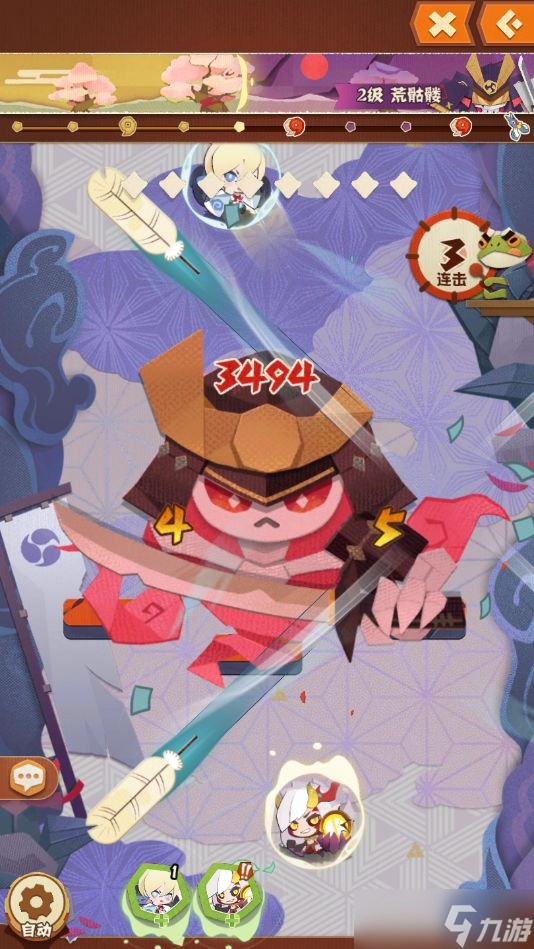 大天狗以首个碰撞目标为中心,制造一个X形的交叉风刃,具有贯穿伤害,清理战场效率极高。由于大天狗本身是贯穿类型式神,因此在释放时,尽量让其穿越更多式神,以求达到伤害最大化。