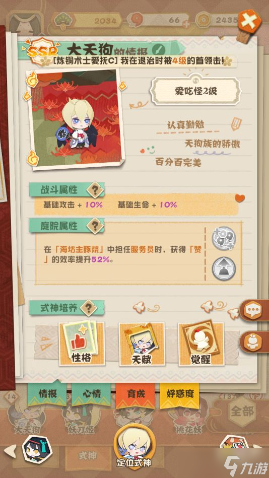 3、庭院属性:在“海坊主豚烧”中担任服务员时,获得“赞”的效率大幅度提升。