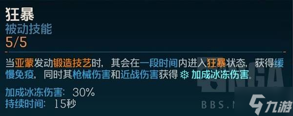 狂暴造成的冰冻附带伤害越高,这个bd的近战伤害叠得就越快,因此再点出蓝色系里的冰冻伤害和绿色系里的元素伤害