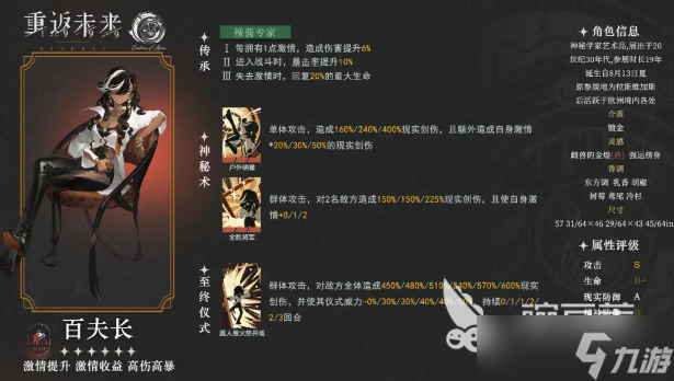 第一位六星角色:百夫长。这个角色的主要定位是高伤害高爆发,普通攻击为单体攻击,大招是群体伤害,最高造成百分之600的真实伤害!可以说是一个非常强力的六星角色。