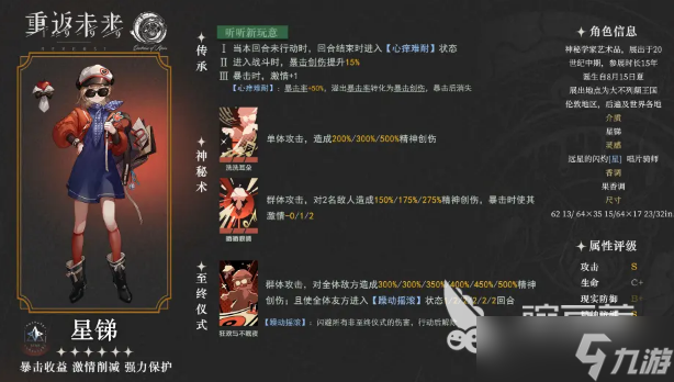 第三位六星角色:星锑。也是一位暴击伤加成很高的角色,并且可以对敌方全体造成削减激情的效果,更好的帮助团队打出伤害。