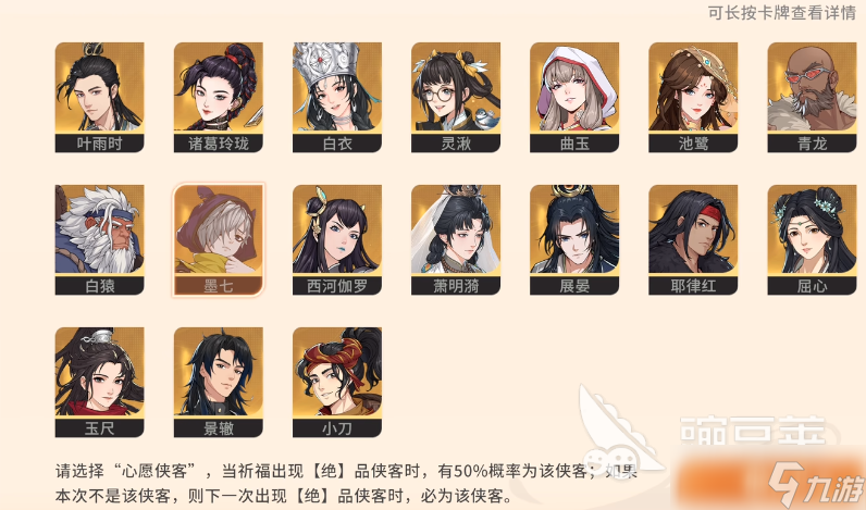 游戏里可以选择的角色很多,每一个的特性都各有区别,首先要介绍的是很多人比较喜欢的诸葛玲珑,角色的名称独特,生命值更是非常强,是在心愿侠客里可以选择的一个角色,还有很大的机会可以直接抽取到角色,诸葛玲珑属于炎系成员,虽然攻击力并没有那么强,但是角色可以防护对手大量的攻击,战斗的时候更有很强的外进防御,常规的攻击力并没有那么优秀,但角色的暴击伤害很高,适合作为整个队伍的辅助,角色开场之后第一个绝招,是不会消耗任何怒气的,每一次使用绝招还能提升角色10%的生命上限。