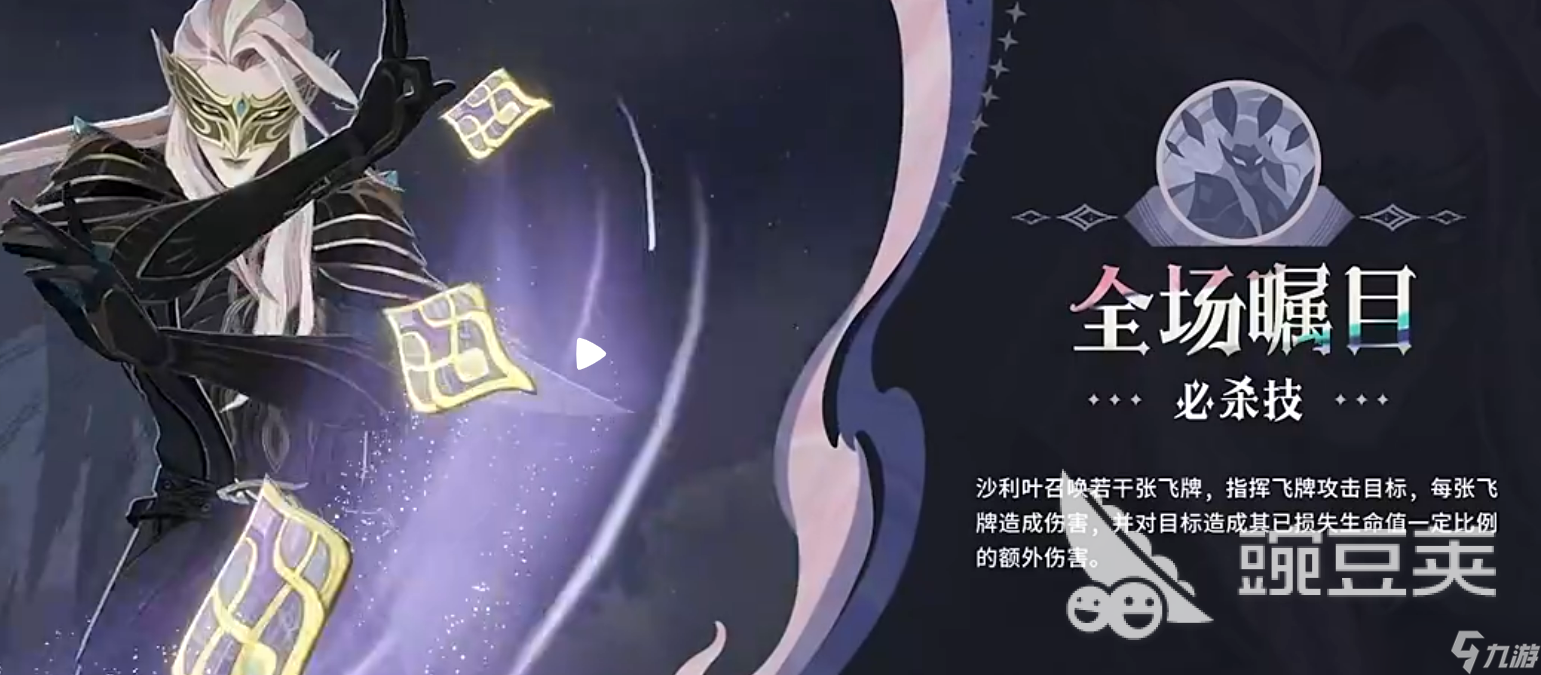 沙利叶的必杀技“全场瞩目”让他在关键时刻脱颖而出。与其说他召唤飞牌进行攻击,不如说这是一种对战场局势的精准掌控。飞牌不仅能造成直接的物理伤害,更能对敌人已经失去的生命值进行额外的伤害。这种按敌人当前生命值计算的额外打击,让沙利叶无论面对单个目标还是多个敌人,都能轻松高效地进行输出。而飞牌的设计也相当巧妙,能让他在战场上对多个目标进行精准的打击,既高效又具威胁。