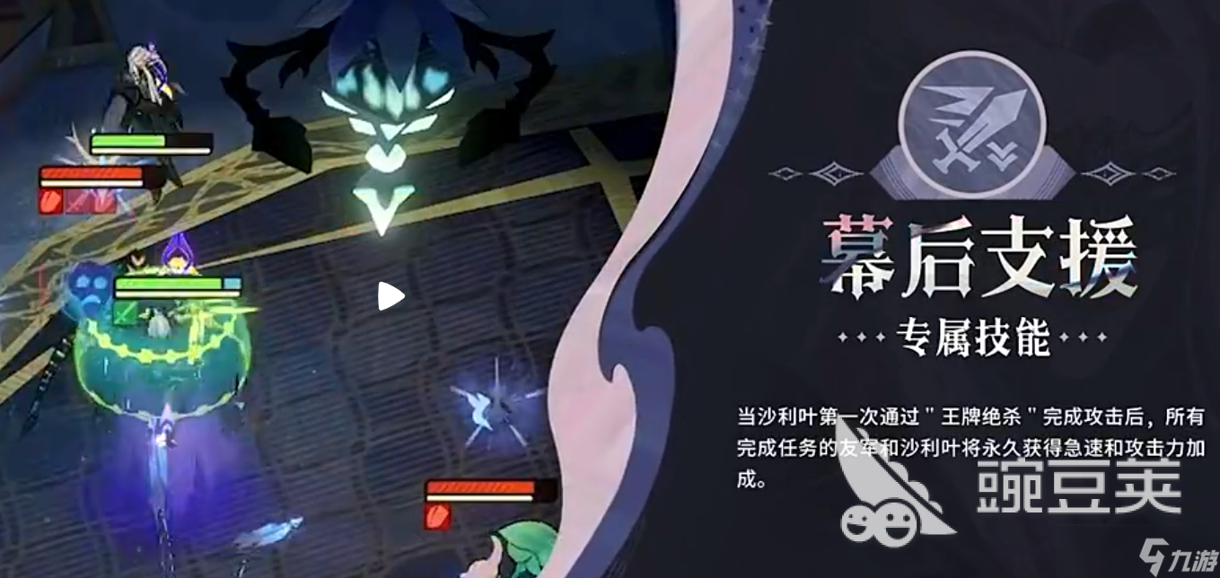 沙利叶的专属技能“幕后支援”则赋予了他更多的战术深度。在“王牌绝杀”技能完成攻击后,所有完成任务的队友以及沙利叶自己都会永久获得急速和攻击力的加成。这种提升让沙利叶和他的队友在接下来的战斗中能够更快速地响应敌人的攻击,并打出更高的伤害。