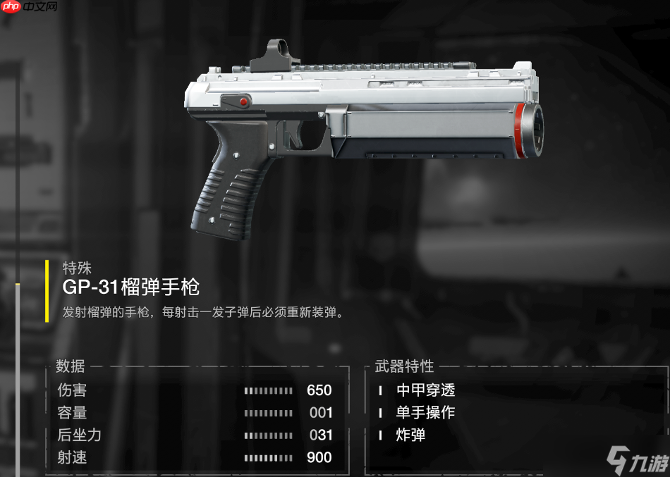 榴弹手枪:用于炸毁虫洞、紧急清理小股敌人;