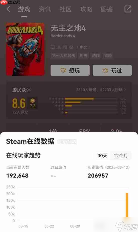 而《无主之地4》发售尚不足一天,其在 Steam 上的最高同时在线人数已飙升至 206,957 人,远超《无主之地2》的历史纪录。