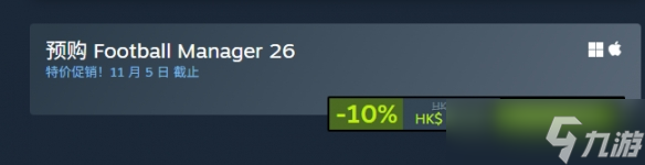 《足球经理26》预购价394.20港币,预购享九折还有抢先体验权。2025年11月5日上线,支持简体中文。开发者是Sports Interactive,发行商为SEGA。新增英超真实队徽等,有赛事直播氛围,女子足球加入,快来开启传奇经理生涯!