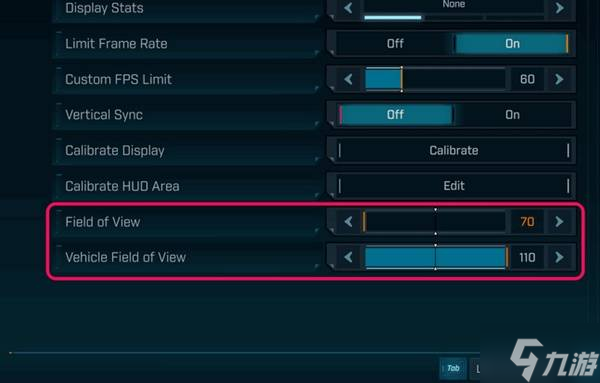 步行状态与载具状态下的FOV滑动条默认值均为90。该数值最低可设置为70,最高可调整至110。增加FOV数值可能有助于减轻运动眩晕感。