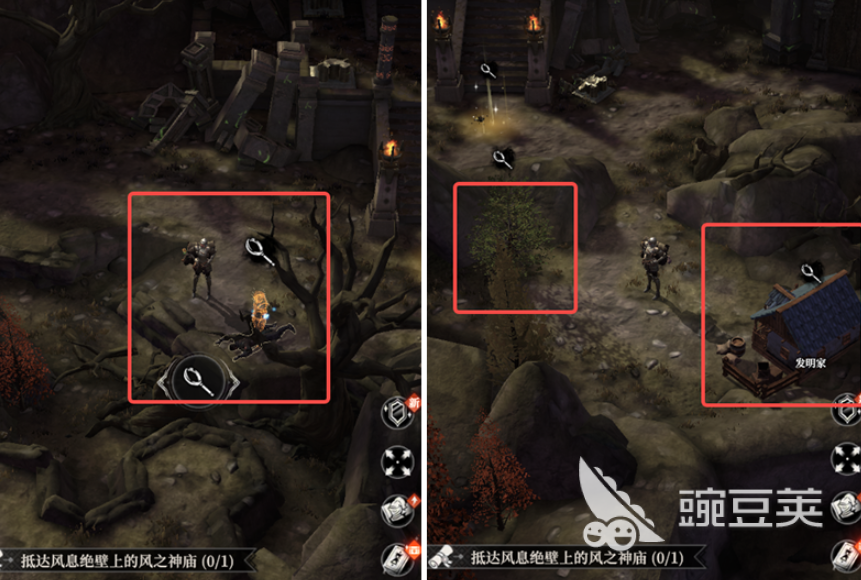 地图的上方区域则以神庙为核心,玩家进入后可以选择翻找杂物并通过战斗获得绿色宝珠,耐力达到780以上时直接清理粉末获得宝珠。绿色宝珠镶嵌后推进Boss战,战胜后会掉落拉杆,从而激活通往织影坑的传送点。