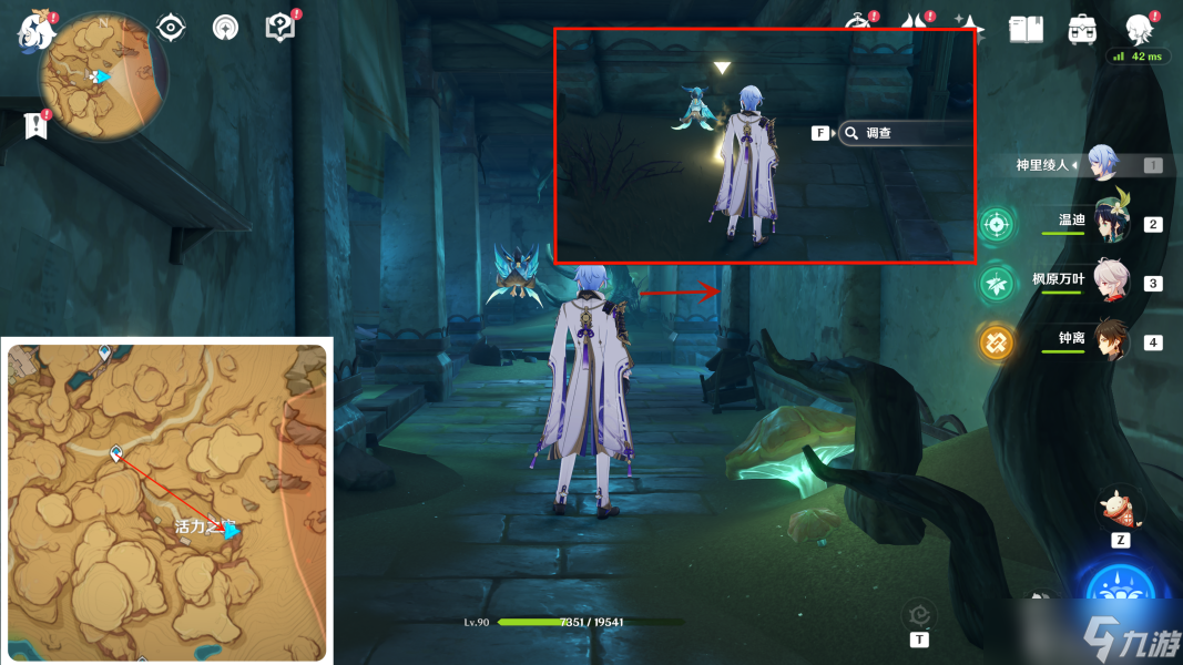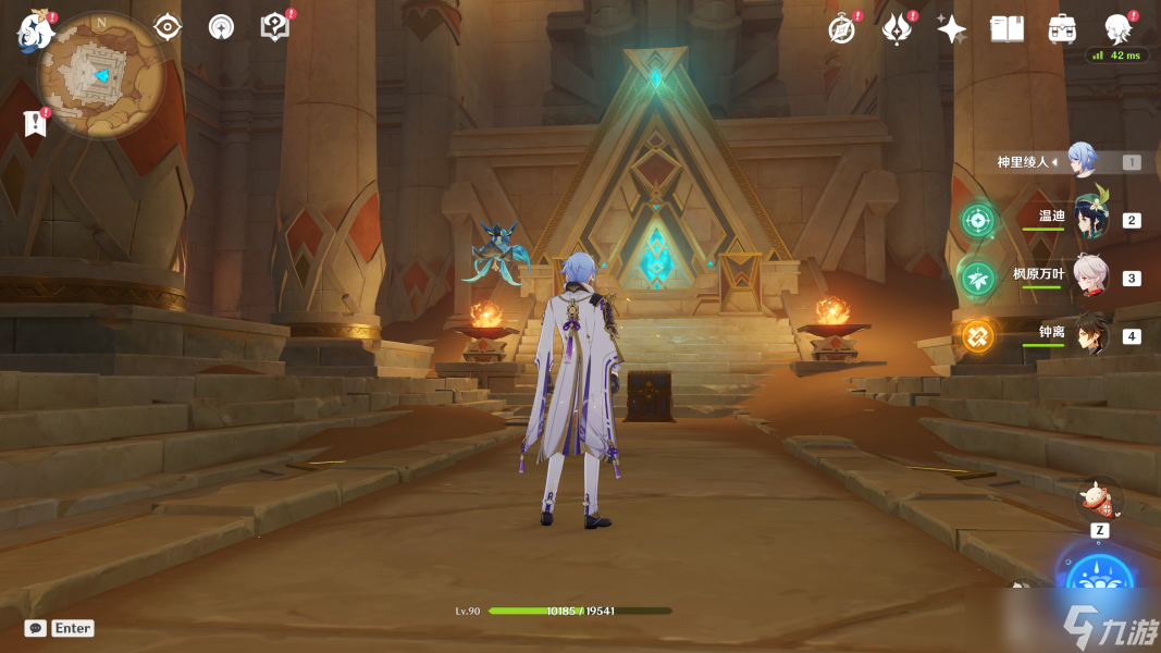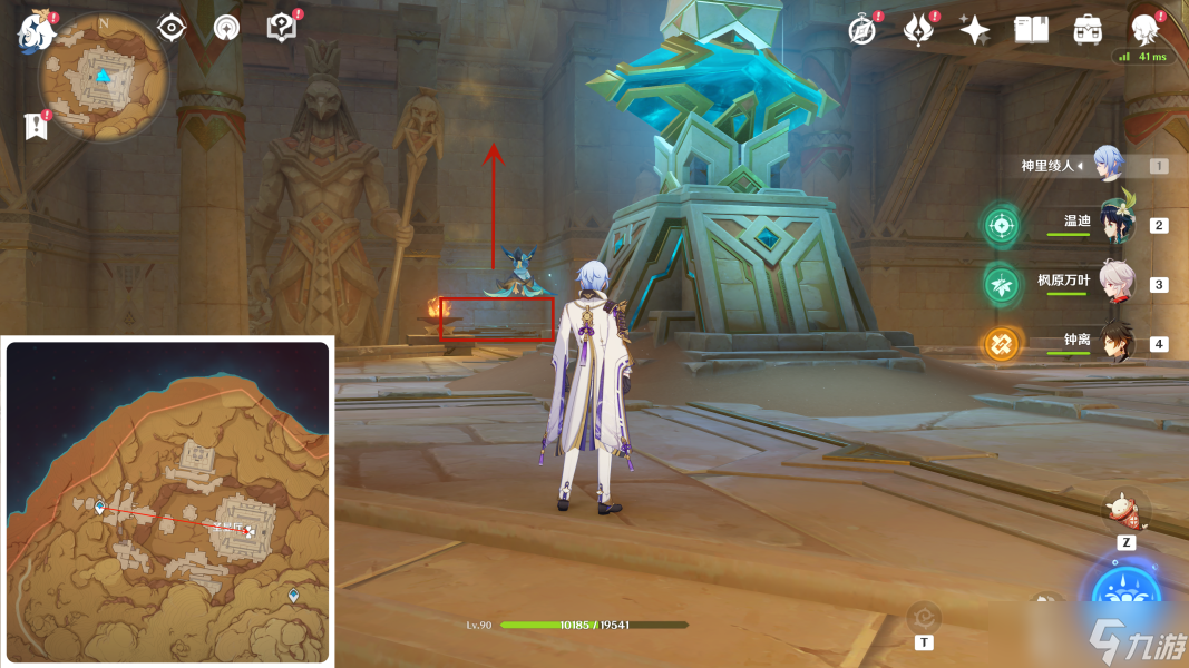 1.首先来到圣显厅处,借助风场来到二层(需要先完成世界任务·黄金梦乡)