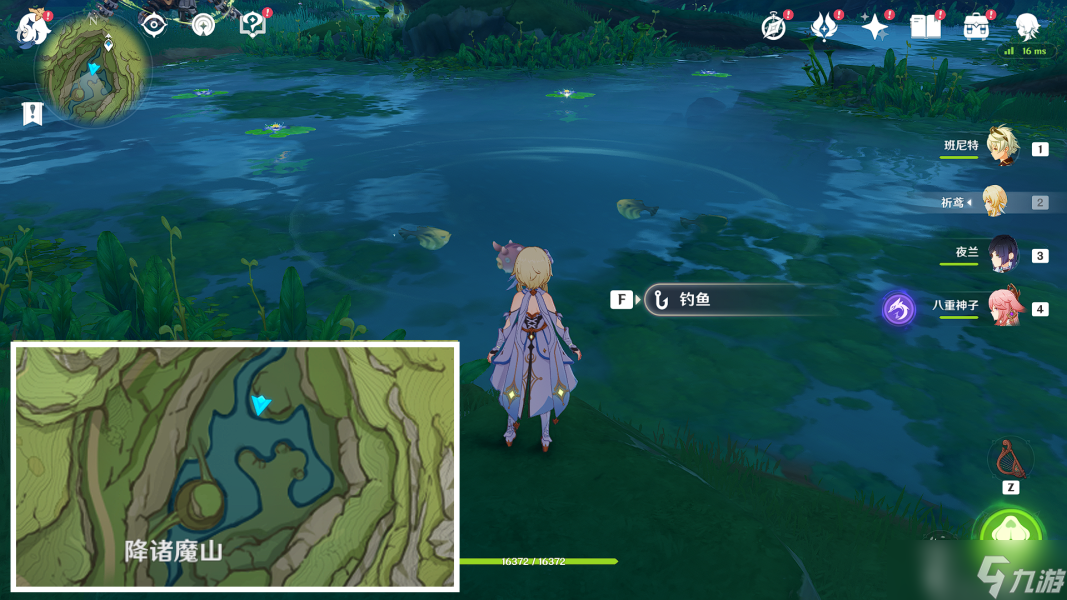 5,之后飞下去,在标记位置钓鱼(第四个×)