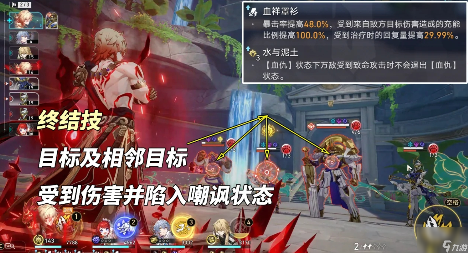 进战后万敌会根据降低的血量,为其天赋进行充能。等充到百分百后会提前进入血仇状态中,在此期间战技能得到大幅强化。当然它也有一定的缺陷,那就是变成不可控的自动状态。等到了自身的回合后,它会自动放出弑王成王的强化战技。充能有一百五的情况下能得到额外回合,并自动放出超强战技弑神成神。它开E消耗的是生命而不是战技点,普通战技会消耗百分之五十的血量。弑王成王会消耗百分之三十五,弑神成神的消耗是零。