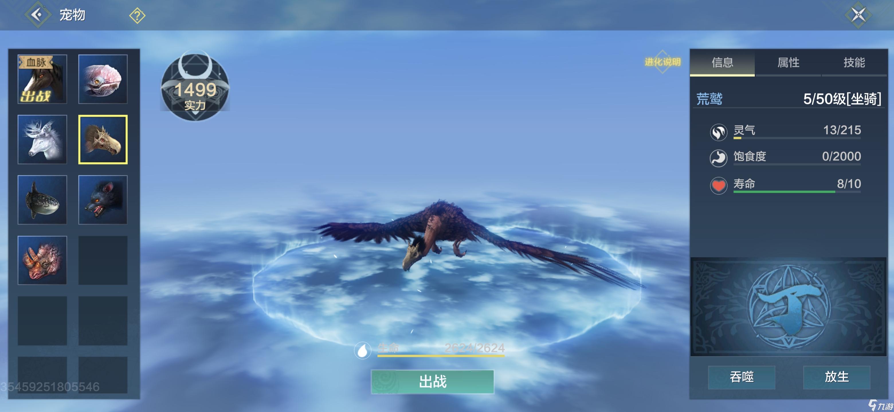 在这片大荒的世界中,培养和吞噬是这款游戏的主要玩法,培养宠物首先就要选择品质高的,不管是新手还是老玩家,推荐选择孟奇,它的奔跑速度达到了十五点,就目前而言可以说是地面上跑步速度最高的宠物坐骑。它和狼类动物一样,属于食肉类的宠物,会主动攻击进入其领地的人或动物。