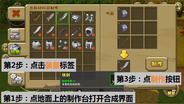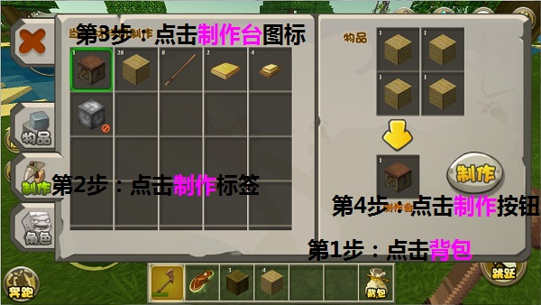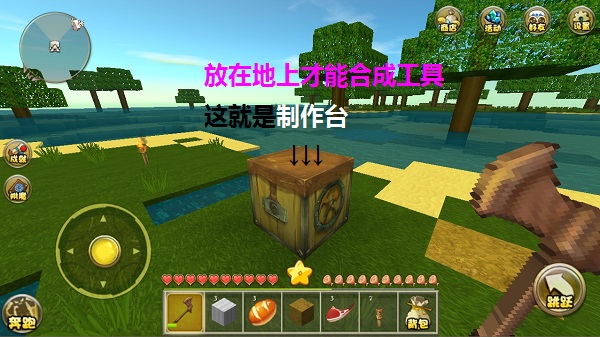 制作台在地上,再点制作台才能打开制作界面,才能合成道具