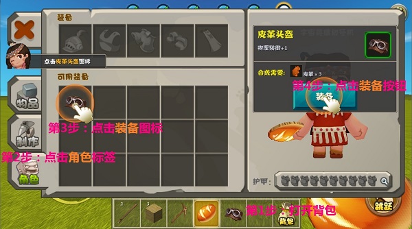 答:点击【背包】→点击【角色】标签→点击装备图标→点击【装备】按钮