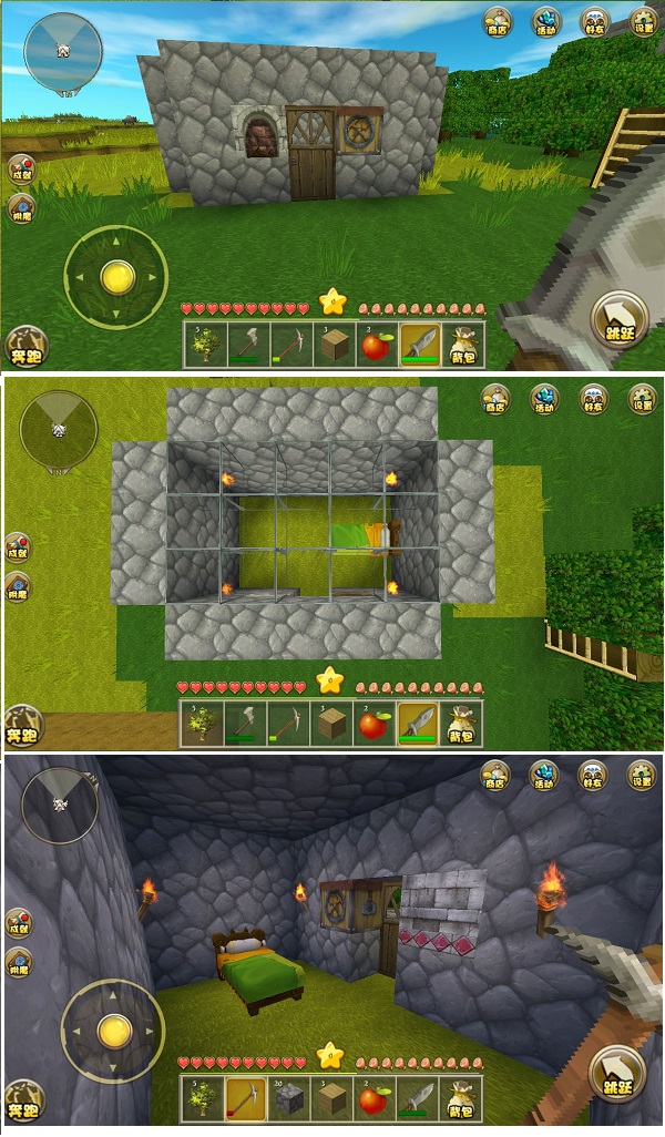 第一次建家,建议用石头做,因为石头容易获得,而且结实,比较抗炸