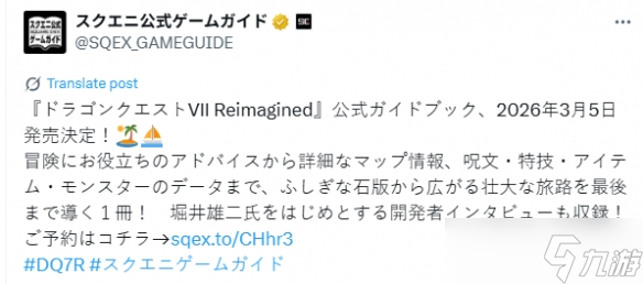 近日,Square Enix宣布《勇者斗恶龙7 Reimagined》官方攻略书将于2026年3月5日推出,售价2750日元(约133元RMB),现已开启预购。