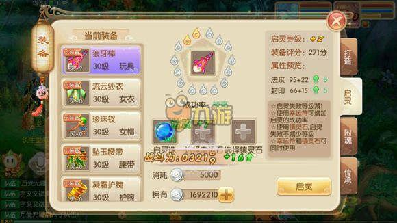 2、装备启灵:启灵也就是通俗的强化,不过在这里需要用到启灵石,启灵石可以商会购买获得,非常方便。强化等级越高,属性增强越多,达到高等级后武器还能发光!装逼就是那么so easy!