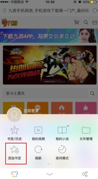 方法二、手机端书签:把一起玩首页固定在手机浏览器的首页书签上