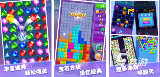 从玩法上来看和俄罗斯方块特别相似,只不过其中又融合了多种趣味十足的玩法,在每种玩法中都有具体的要求,比如选择了俄罗斯方块的玩法之后就会从上方掉落出不同形状的方块,通过合理放置的方式,将填满整行,不论是横行或者是竖行都可快速消除,从而获得相应的分数,收集大量宝石。