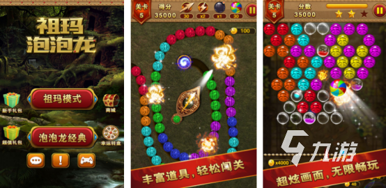 其中涵盖了经典泡泡龙模式以及祖玛模式,也设立了多个挑战的关卡,在每个关卡中都会呈现出大量的辅助道具,其中包括了炸弹以及提示等等。通过瞄准的方式将相同颜色的球球放在一起即可快速消除,游戏看似操作方式特别简单,但是比较考验玩家的手速和反应能力。