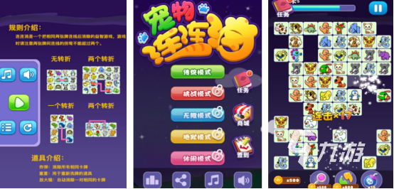 Q萌可爱的画风,您将会沉浸在各种宠物的世界当中,这些宠物都被随机打乱顺序,玩家却要仔细观察,将两个相同的宠物连接在一起即可快速消除,还涵盖了多种不同的模式以及1500多个挑战的关卡。在每个关卡中都需要利用最短的时间完成闯关,锻炼了玩家的观察力和手速。
