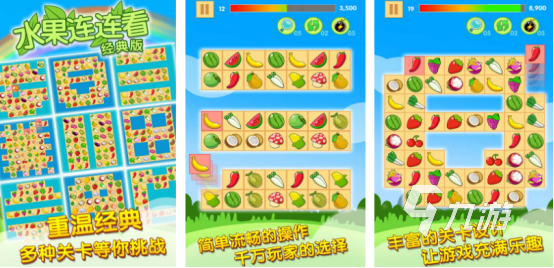在经典连连看的玩法上,采用了美味的水果进行设计,其中还涵盖了经典模式以及极速模式等等。如今已经设立了1000多个挑战的关卡,就算新手玩家也可以在这里完成消除的无尽快感,看到相同的水果之后,就需要点击屏幕完成消除,也支持了两个转折。