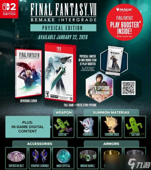 《最终幻想7:重制过渡版》Switch 2实体盒装版定价正式公开,售价为40美元。该版本将随盒附赠《万智牌——最终幻想》专属游玩助推器包。