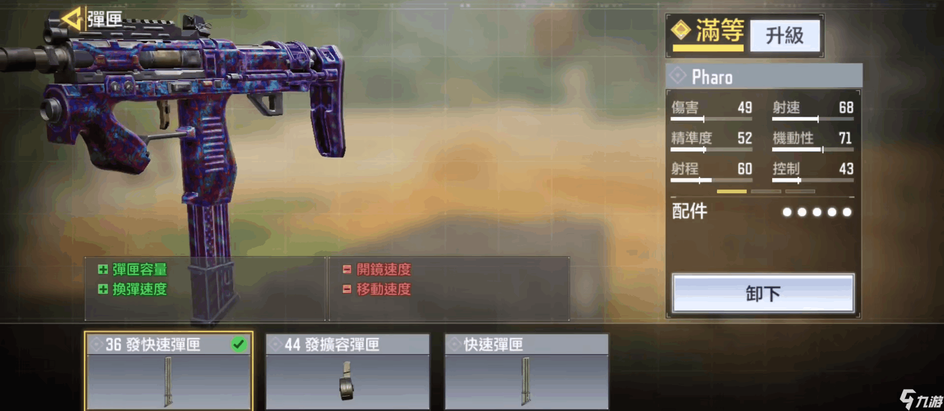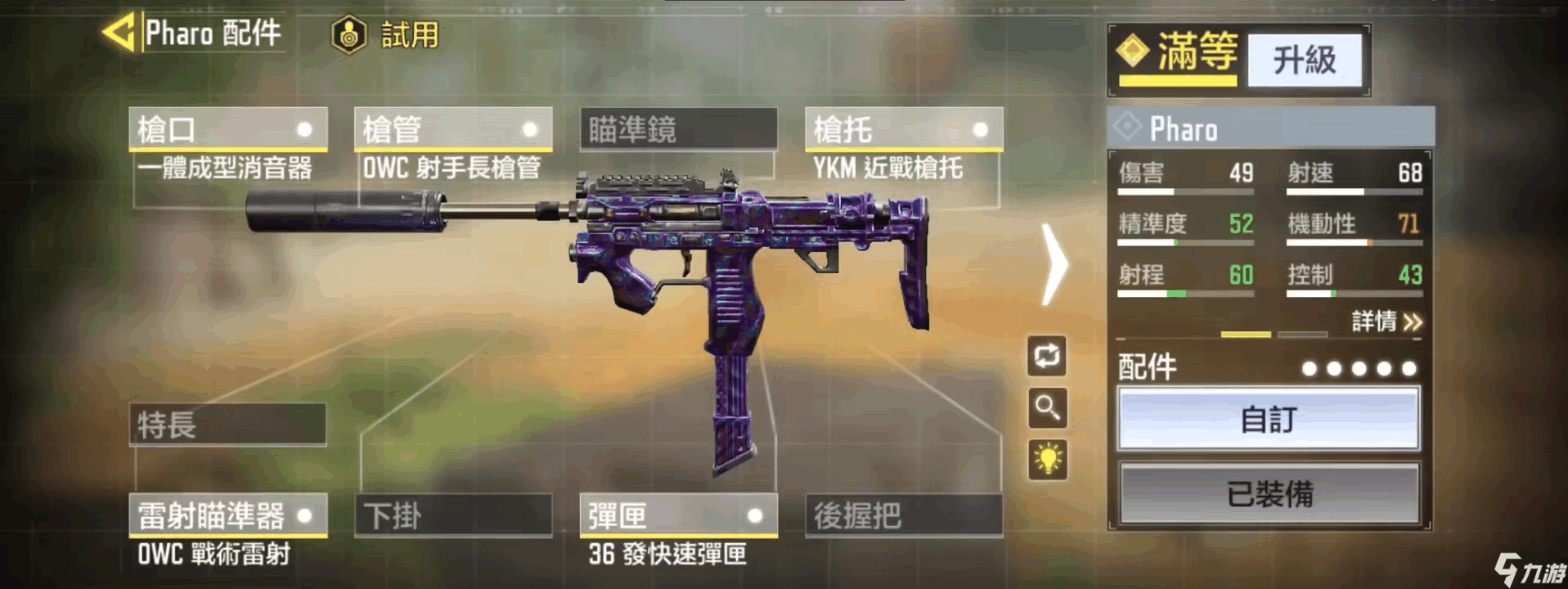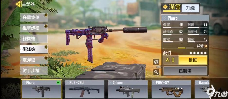 Pharo本身的枪械数值还是很不错的,我们可以看到作为一把冲锋枪它的伤害有49点之高直追常见的突击步枪,而它的射程和机动性也非常的不错,既可以远点也可以突脸秒杀敌人后再转点。不过相对的它的精准度和控制略差,需要玩家不断使用来逐渐掌握。因此在配装方面我们需要补充其精准度和控制的劣势,并添加一些功能性配件强化其优势。