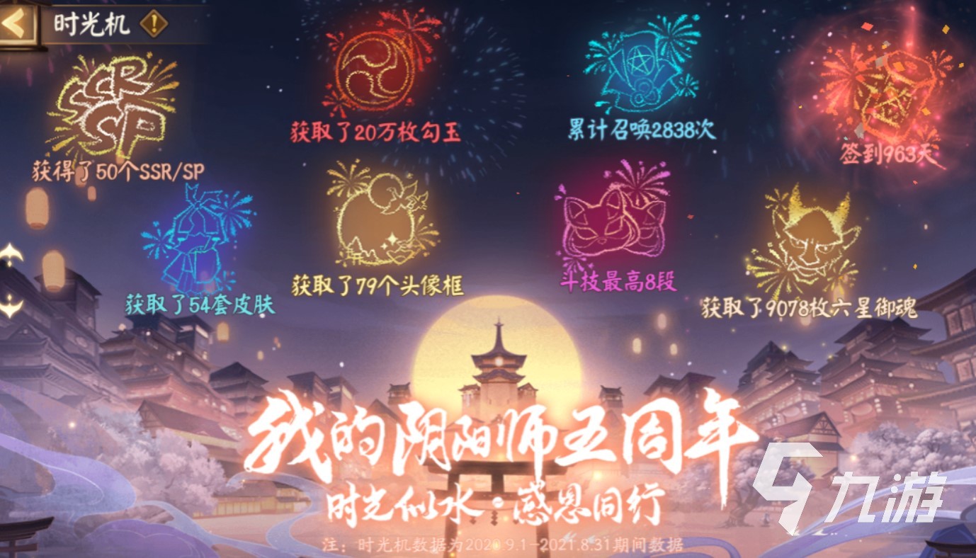 6.五周年时光机,这个奖励小编认为是最香的了,看完一段动画之后分享一下(假装分享),就可以随机获得一只SSR/SP,小编拿到的是辉夜姬,其次还有一套神乐新皮肤“雅琼飞白”,恭喜神乐又添新衣。