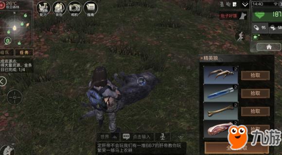 石块要的石头到处都有,骨头主要是打怪掉的,到秋日森林传送点附近都会有被感染的人,还有一些箱子有的时候有新币。再就是打怪的也多,狼、鹿、熊都有。