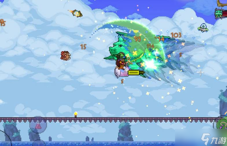 猪龙是飞行敌怪,总共有三种类型,分别为紫色、粉色、红色,具体是根据其生成的位置决定,但是本身属性并没有太大的区别。最大生命值为两百一十点,伤害为七十点,防御值为十六,击退抗性是百分之五十。该生物拥有隐身的特殊能力,会将自己的身体变得几乎透明,让玩家完全无法看见其所在的位置。在透明状态下它们可以穿透墙壁等实体块,但是当其对我们发起攻击的时候就会脱离隐身装填,重新变得可以看见。