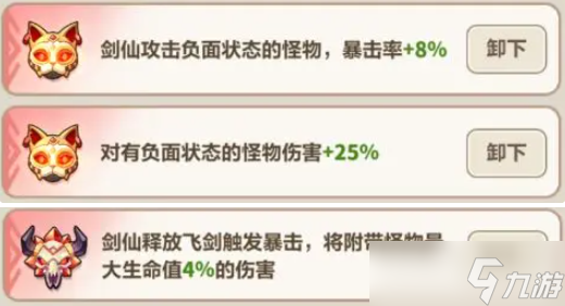 1、可以提升暴击率提升,只需攻击负面状态怪物即可触发,难度较低,推荐搭配【负面状态增伤】一起使用。