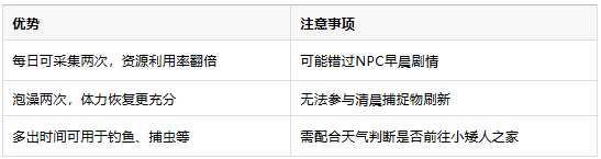 傍晚后:18:00后再次泡澡 → 洗去体力消耗 → 进行第二轮采集