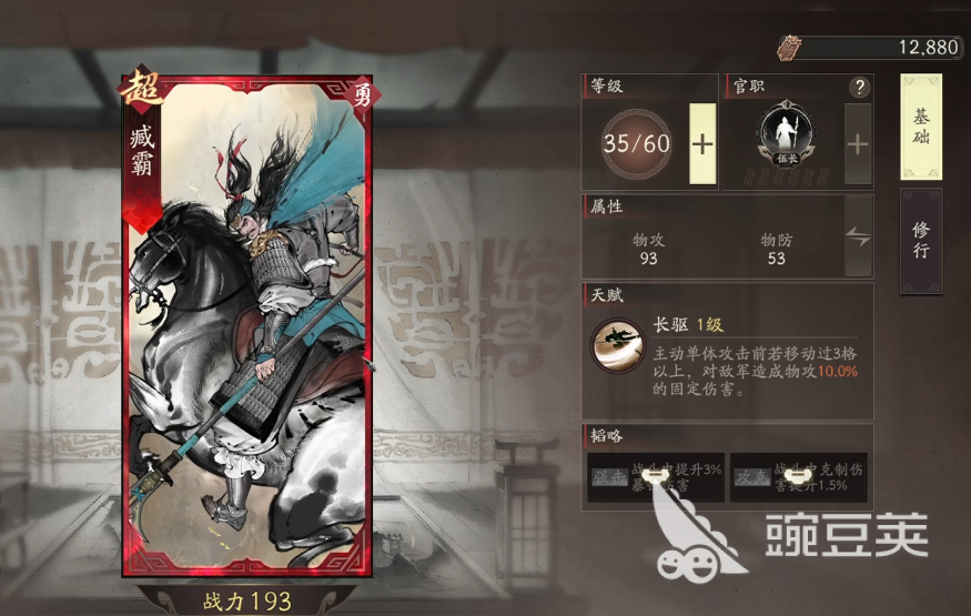 在当下版本中张辽是属于主帅T0梯队,不管是前期主线还是pvp竞技上都有不错的表现。在张辽的养成路线上有主帅流和铁车流两个流派,如果选择主帅流的话,就要搭配臧霸、高览、陈到、乐进等副将,其中臧霸的解锁难度最高,因为他是氪金赠送的副将,不想氪金的玩家只能通过探访玩法来解锁。在解锁未征召的副将时会有进度条提示,品质越高的副将探访次数越多,臧霸大概会需要20次左右的探访才能百分比解锁,好在每次探访也有兵力加成。