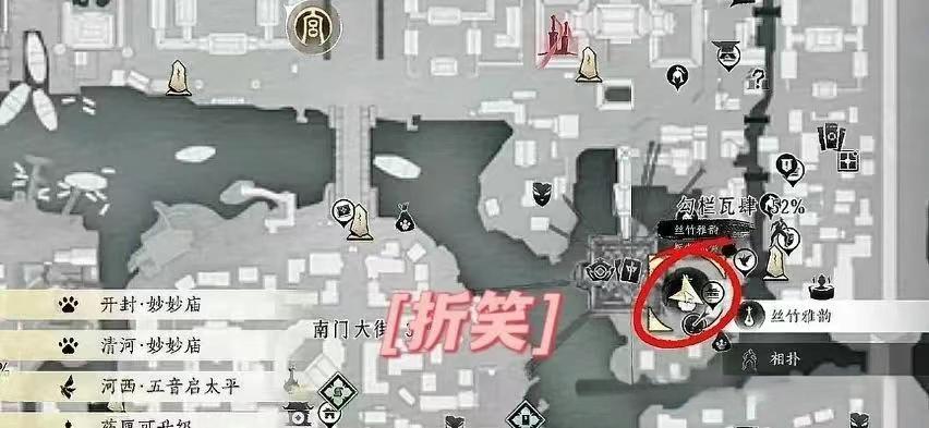 地图的标记处分别寻找折笑、花前、郑文焕达成余音缭绕评价
