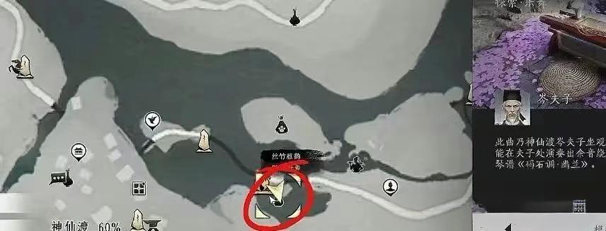 在地图上找到岑夫子并前往获得清河玉弄梅,即可解锁古琴