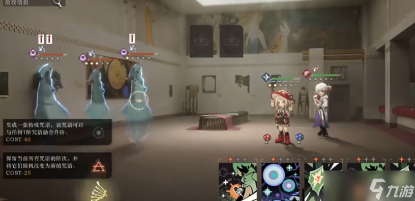 由于马库斯开局能拿到一点灵光,每回合开始时获取一点灵光,标注目标每行动一次又能获得一点灵光,因此在标注目标每回合最少一动的情况下,马库斯从战斗开始到战斗结束基本都不怎么缺高阶咒语。咒语升阶后会在原有基础上带来倍率提升和额外效果,不过在马库斯这三阶咒语还有一个作用是额外获取激情,主要靠精读这个状态增益。