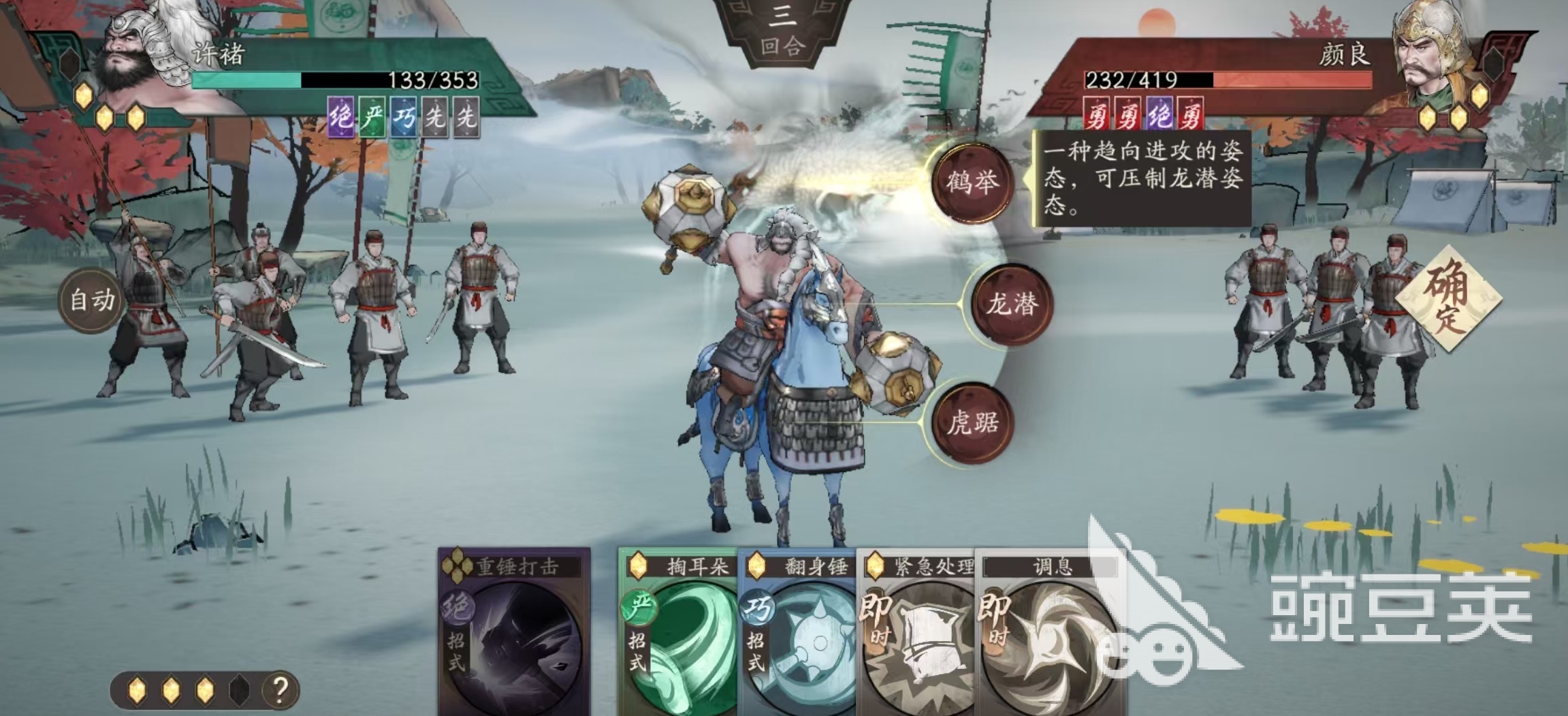 目前游戏中一共有三种兵种,分别是勇、巧和严,这三种存在互相克制的方式。克制的进攻方输出提升10%攻击,并获得25点战意,被克制的防守方反击降低20%伤害。具体的设置规律是勇克制严,严克制巧,巧克制勇,这样的设置符合中国古代提倡的一力降十会,四两拨千斤这样的哲学思维。千万不要小看这写加成,无论是开荒还是后期团战,这些克制就能直接绝对了是否能越战力去击败对手。