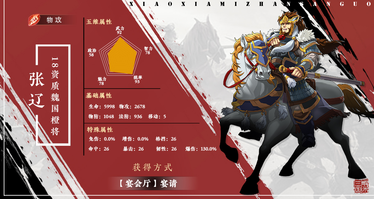 大魏良将:张辽、曹操同时招募,攻击+5%