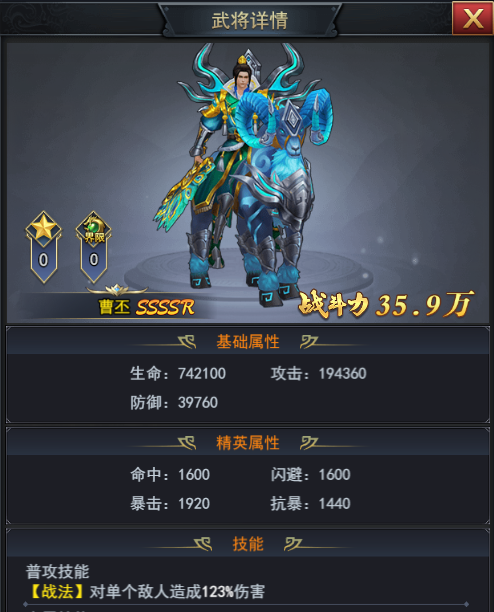 总结一下:曹丕在技能伤害上算是最强武将没有之一,同时还有几率眩晕的属性,再加上升级版的合体技能综合得分90分!