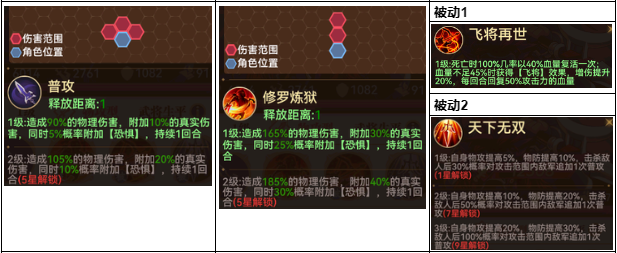 吕布作为现阶段拥有红将面板中物攻第一的属性面板,全三国真实伤害最强武将,输出绝对为当前全武将中的扛鼎者。相对于关羽的单体伤害,吕布普攻自带AOE,且附加真实伤害,技能目标两个人,又拥有除单体技能最强的技能系数。虽然单体伤害不如关羽,但回血、复活、击杀额外追加普攻等特效在武将全面性上堪称红将之最。群雄阵营玩家可配合董卓、貂蝉组成最强三人行组合,搭配增加攻击、暴击、连击类型宝物,可将吕布伤害最大化!