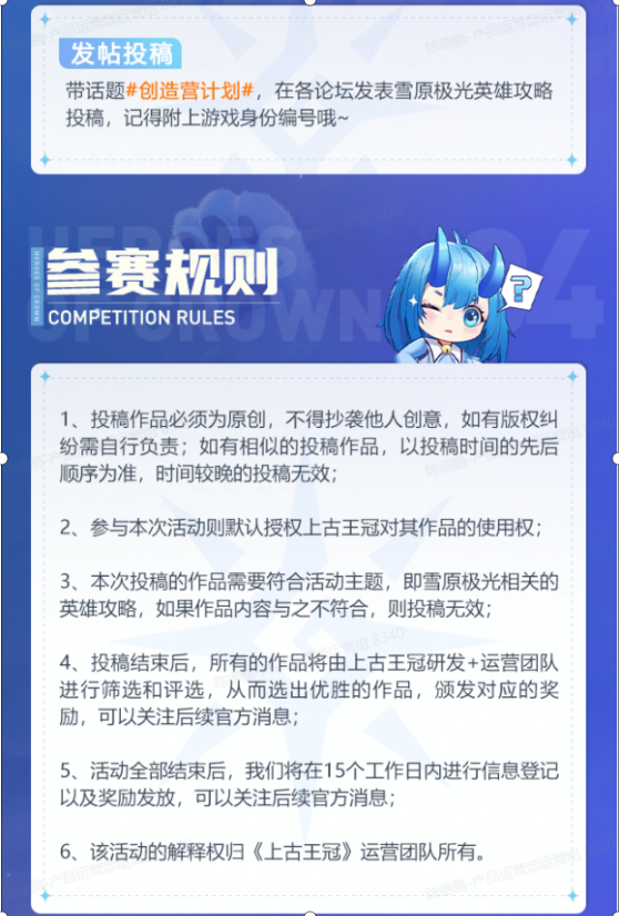 雪原极光的英雄攻略征集活动正在火热进行中!古古已经收到了好多大人投稿的攻略,大家都超棒的~