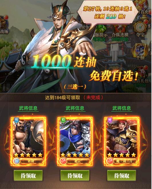 同时为了保证玩家的游戏体验,能够自由地组成自己心仪的队伍,《铁杆三国》设置了独有的十连保底功能,达到一定等级即可享受这个福利,并且魏蜀吴阵容都可以进行挑选,可以快速凑齐自己的专属队伍。
